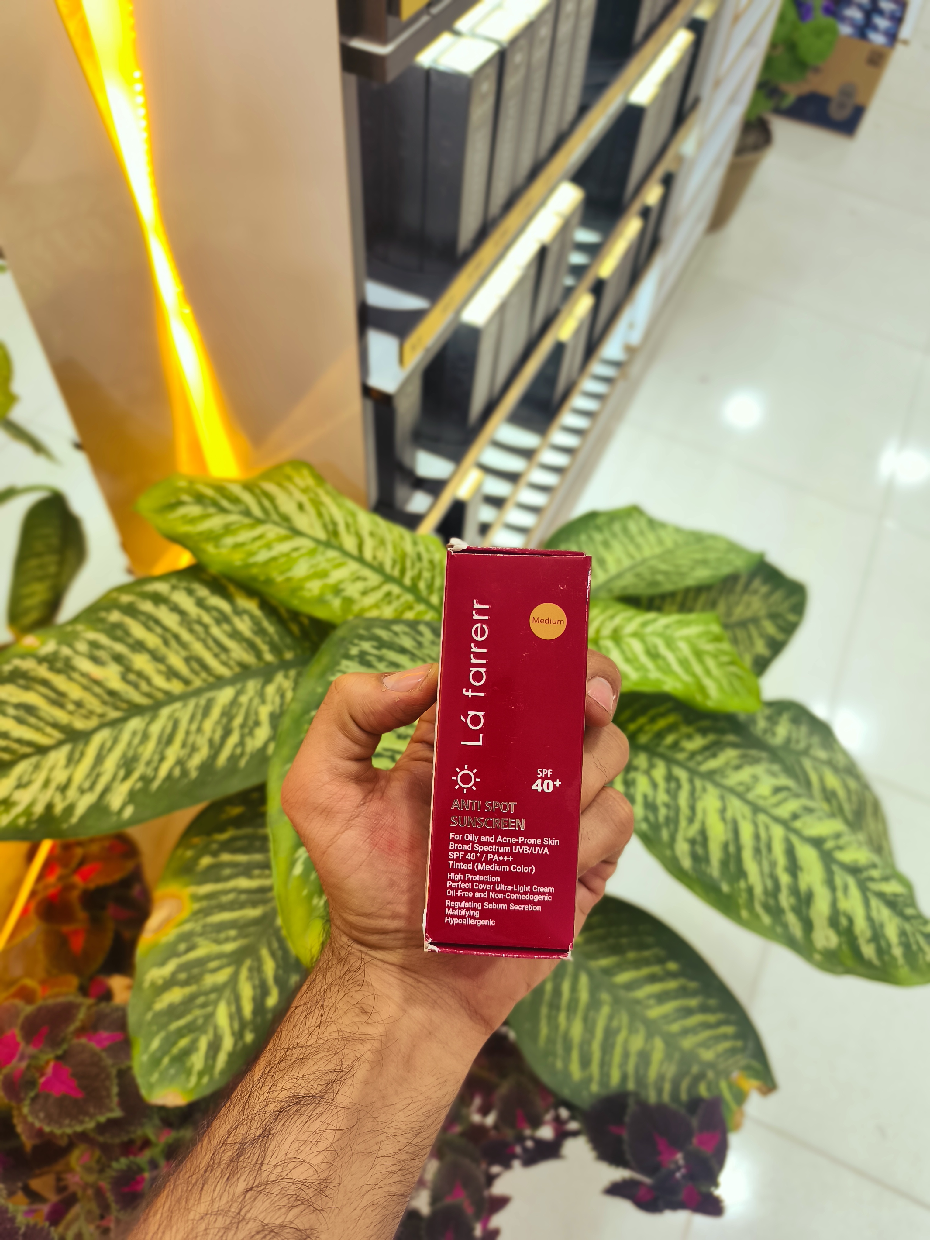 کرم ضد آفتاب و ضد لک رنگی لافارر مخصوص پوست چرب و مستعد آکنه رنگ متوسط مدل Lafarrerr ANTI SPOT SUNSCREEN SPF ۴۰ حجم ۴۰ میلی لیتر