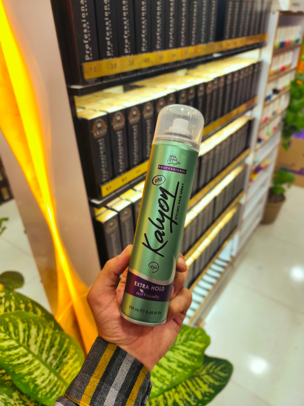 ابتدا قوطی تافت حالت دهنده موی کالیون را بخوبی تکان دهید و از فاصله 30 سانتی متری بر روی موهای خشک اسپری کنید