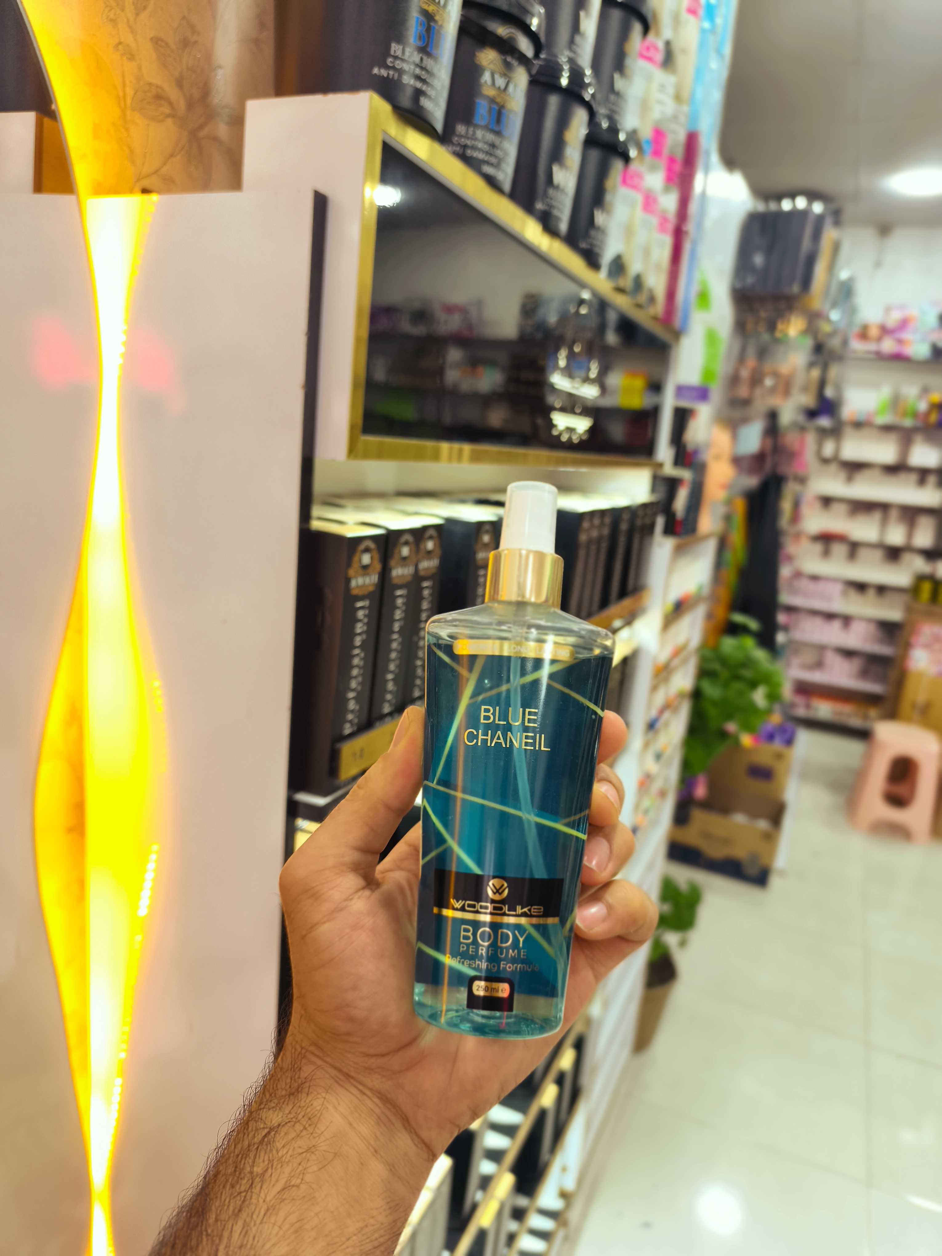 سایر توضیحات: بادی اسپلش مردانه بلو چنل وود لایک - ماندگاری بالایی دارد - پخش بوی بالایی دارد - رایحه خنک و تلخ