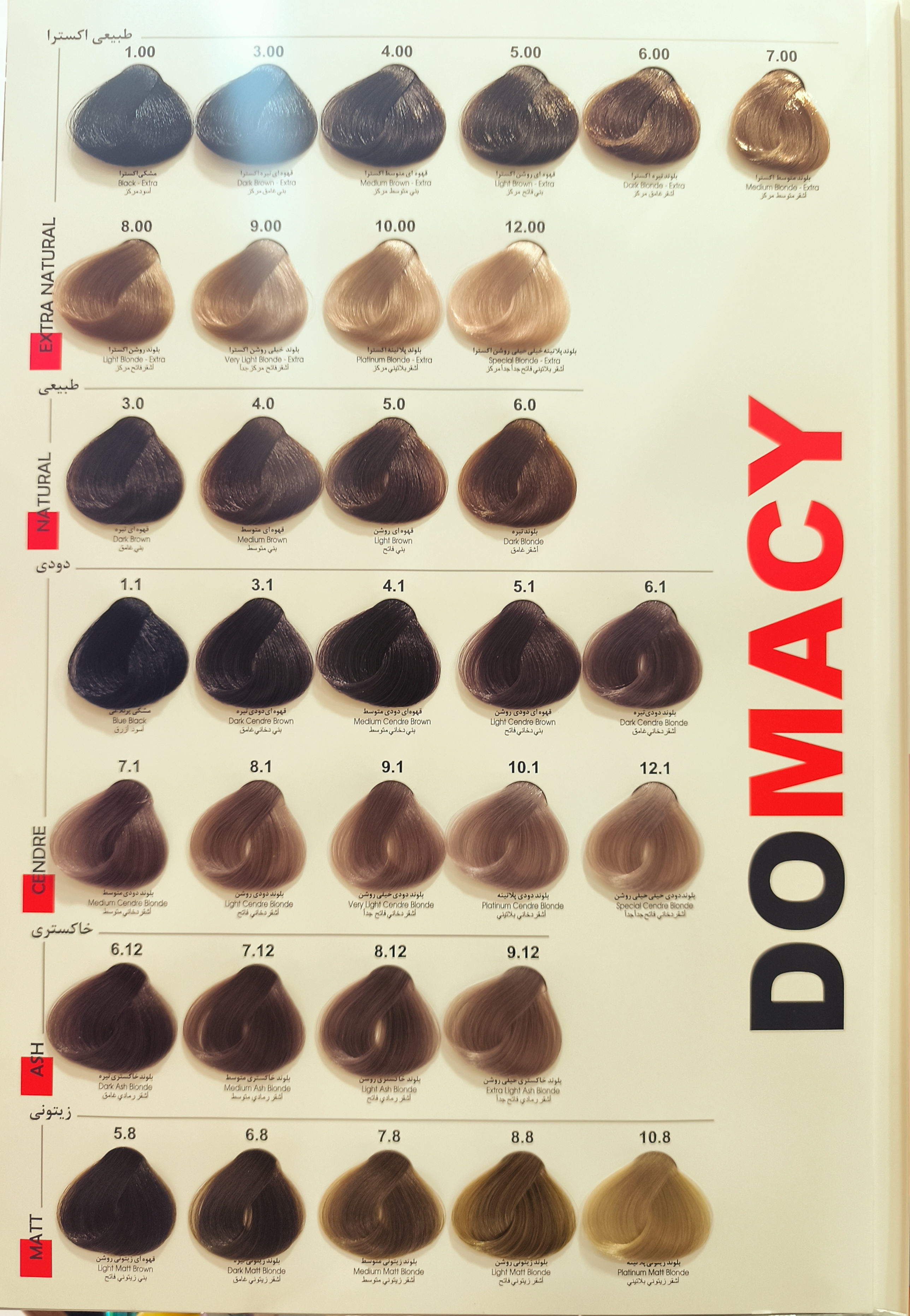 رنگ موی دوماسی سری زیتونی شماره ۸٫۸ رنگ بلوند زیتونی روشن حجم ۱۲۰ میلی لیتر