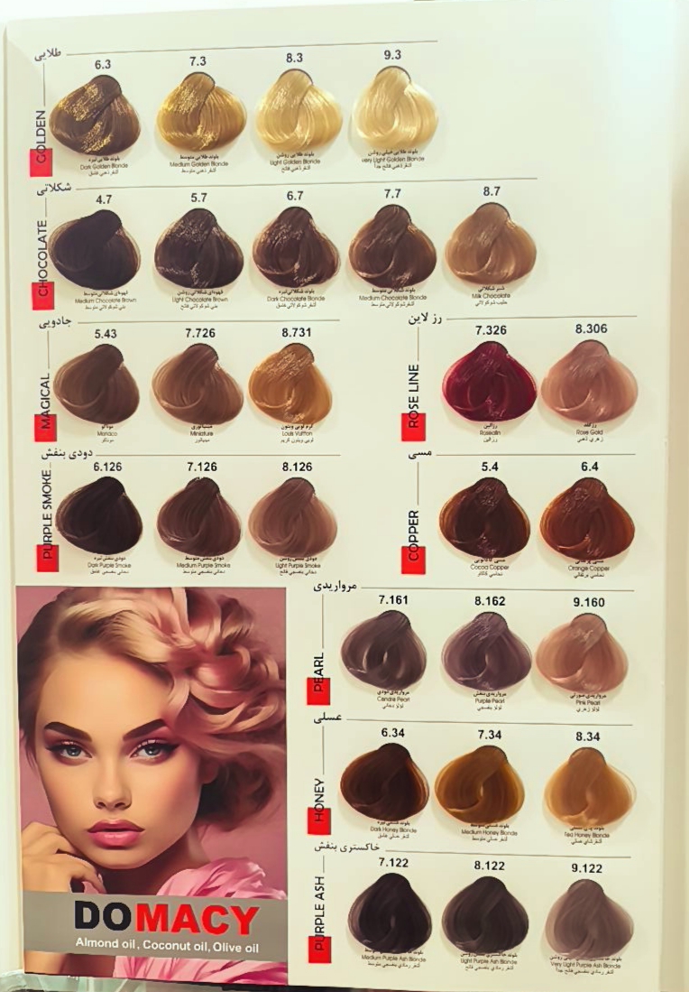 رنگ موی دوماسی سری شکلاتی شماره ۸٫۷ رنگ شیر شکلاتی حجم ۱۲۰ میلی لیتر