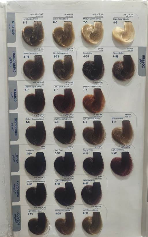 سایر توضیحات: حاوی روغن بادام ، روغن هسته انگور ، روغن آرگان - رنگ مو فقط با رنگدانه های لاونشتاین آمریکا - حاوی ویتامین E ، A ، گروه B