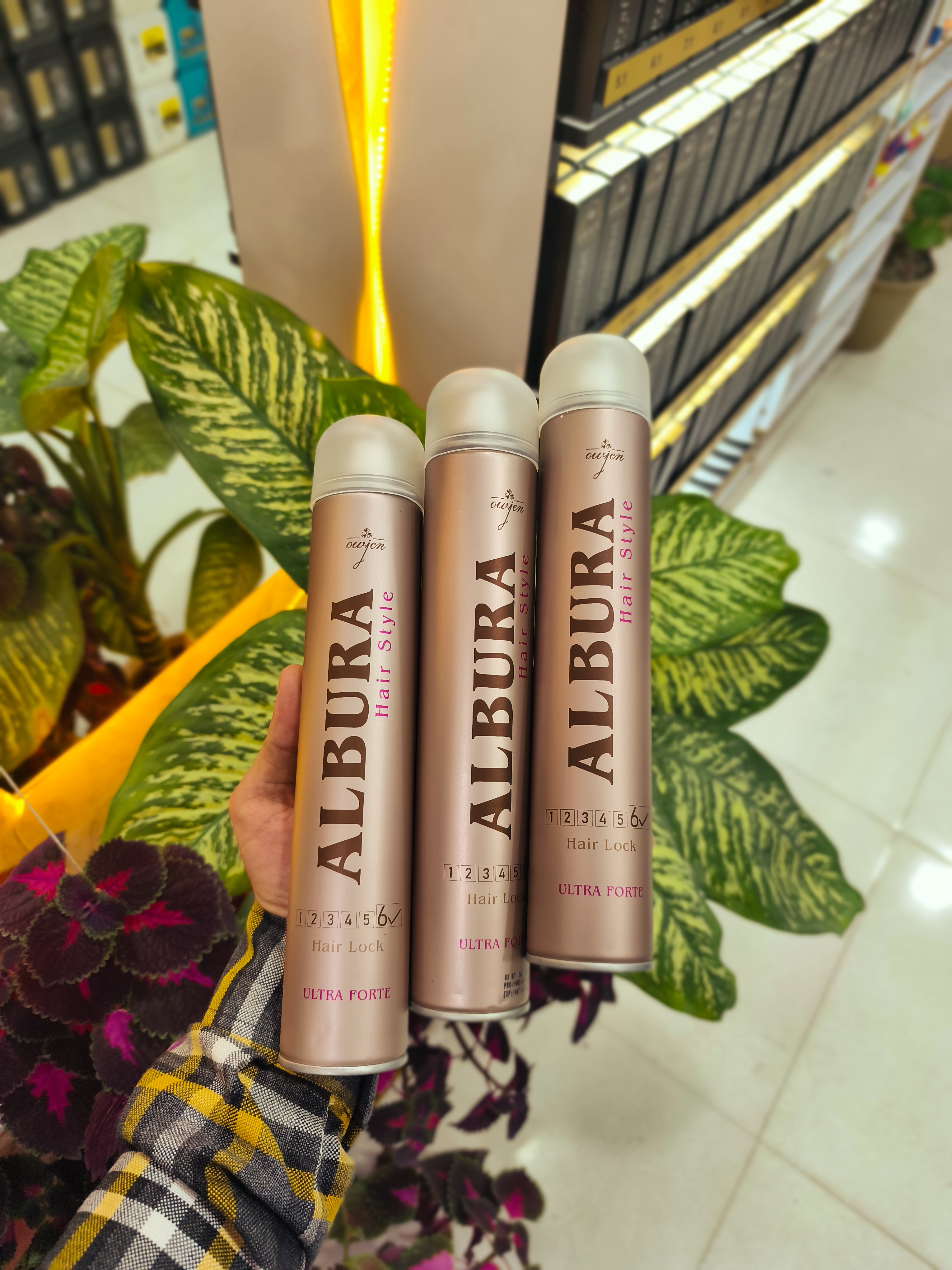 اسپری چسب موی آلبورا شماره ۶ حالت دهنده فوق العاده قوی و براق حجم ۴۰۰ میلی لیتر